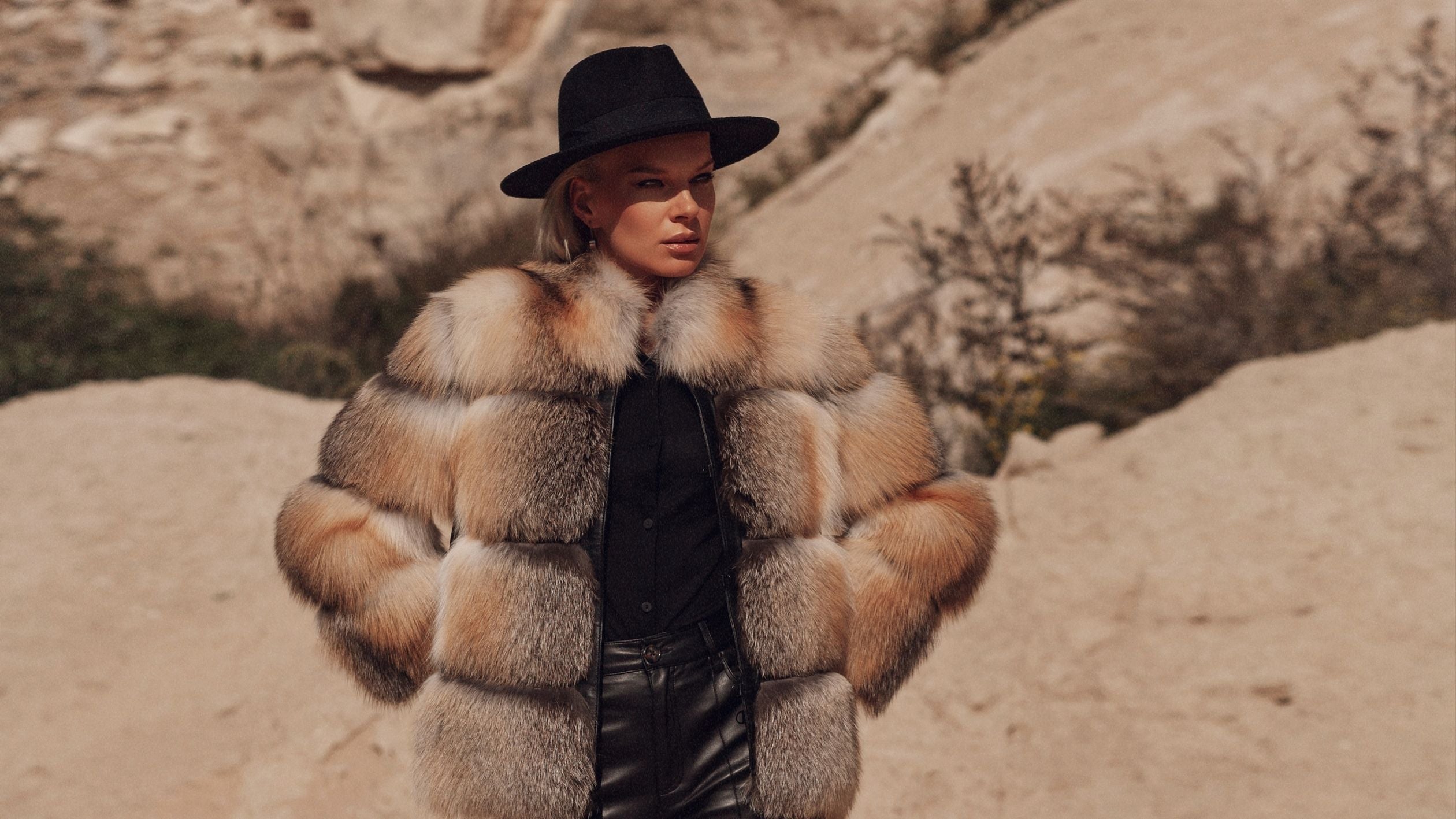 Geacă din Piele Naturală cu Blană de Vulpe, Femei, Obsidian 113