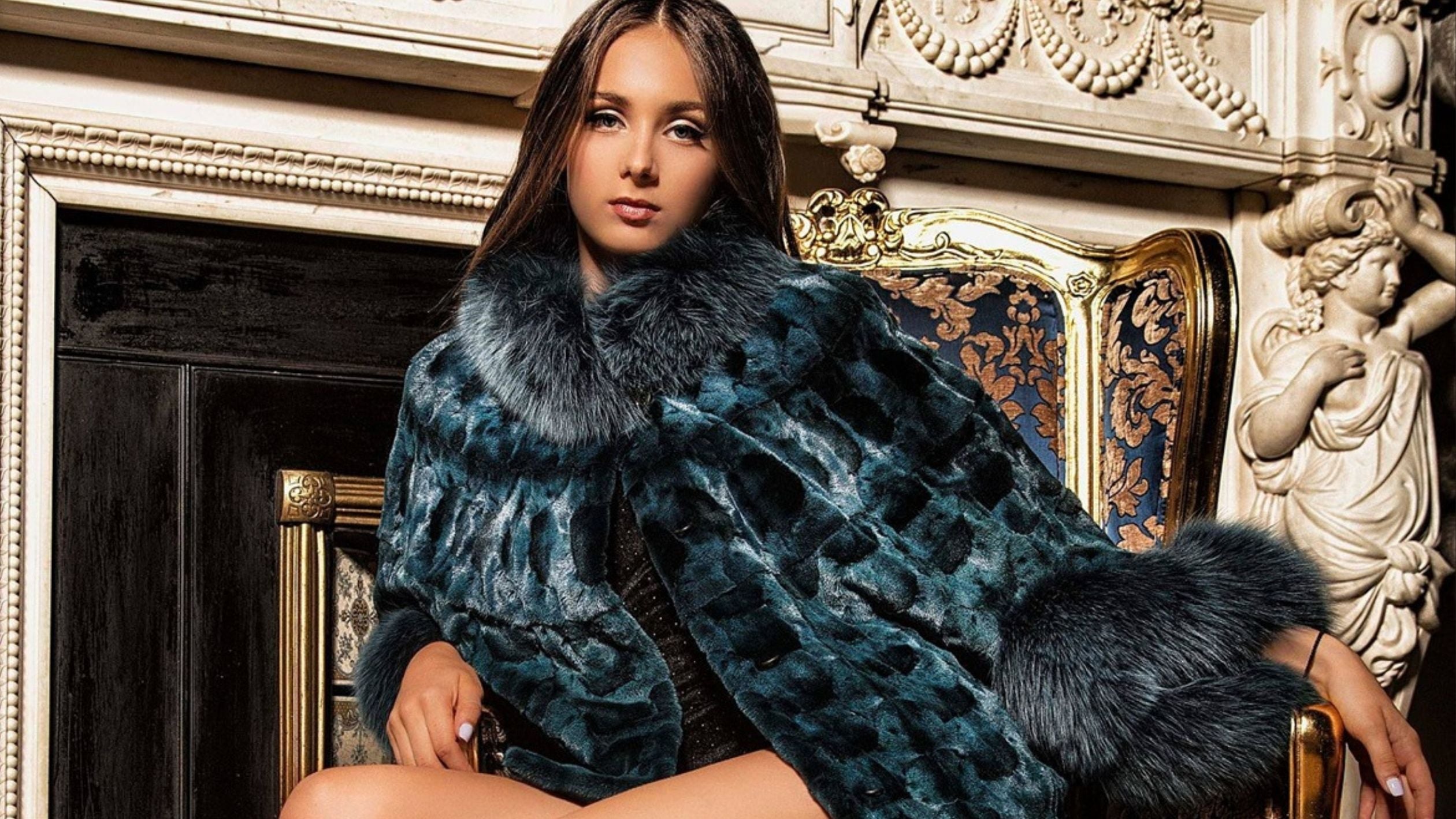 Haină din Blană Naturală de Vizon și Rex Chinchilla, cu Glugă, Femei, Diamond 391