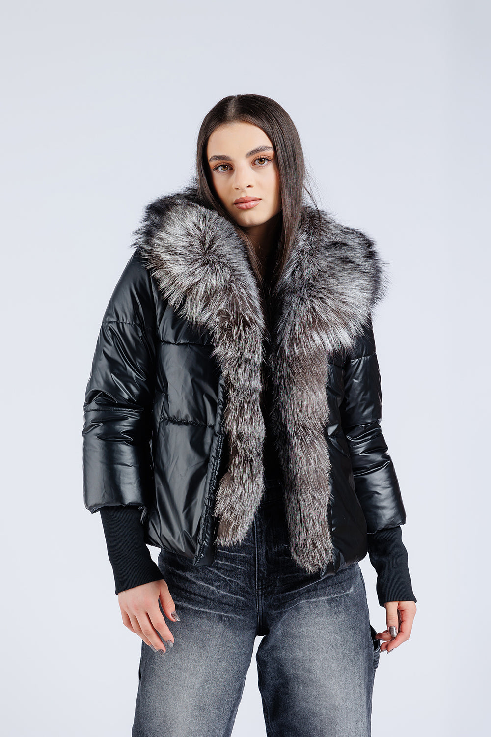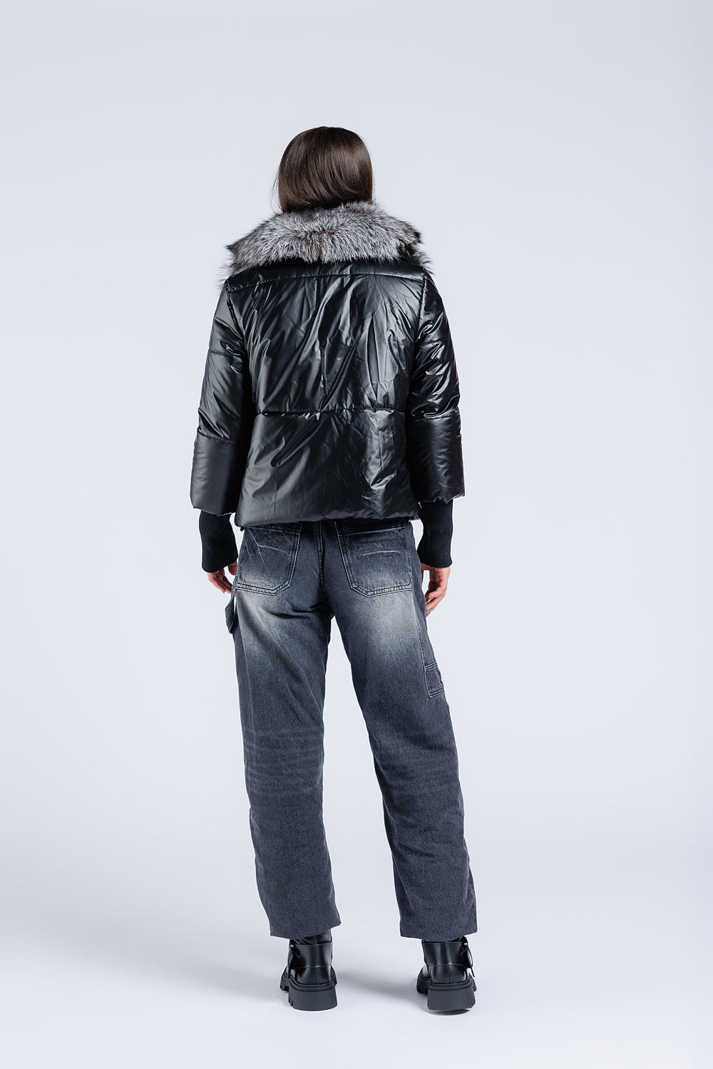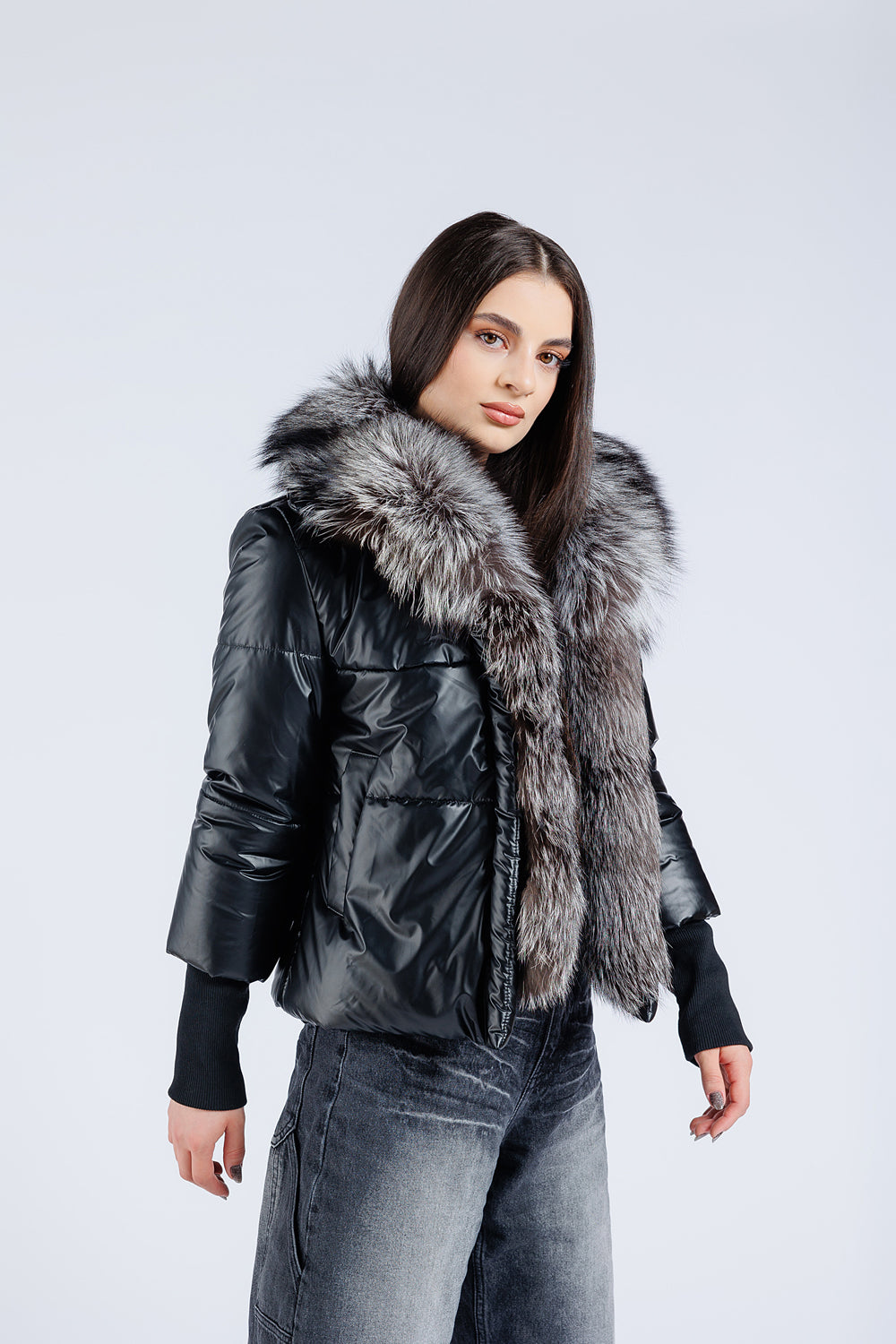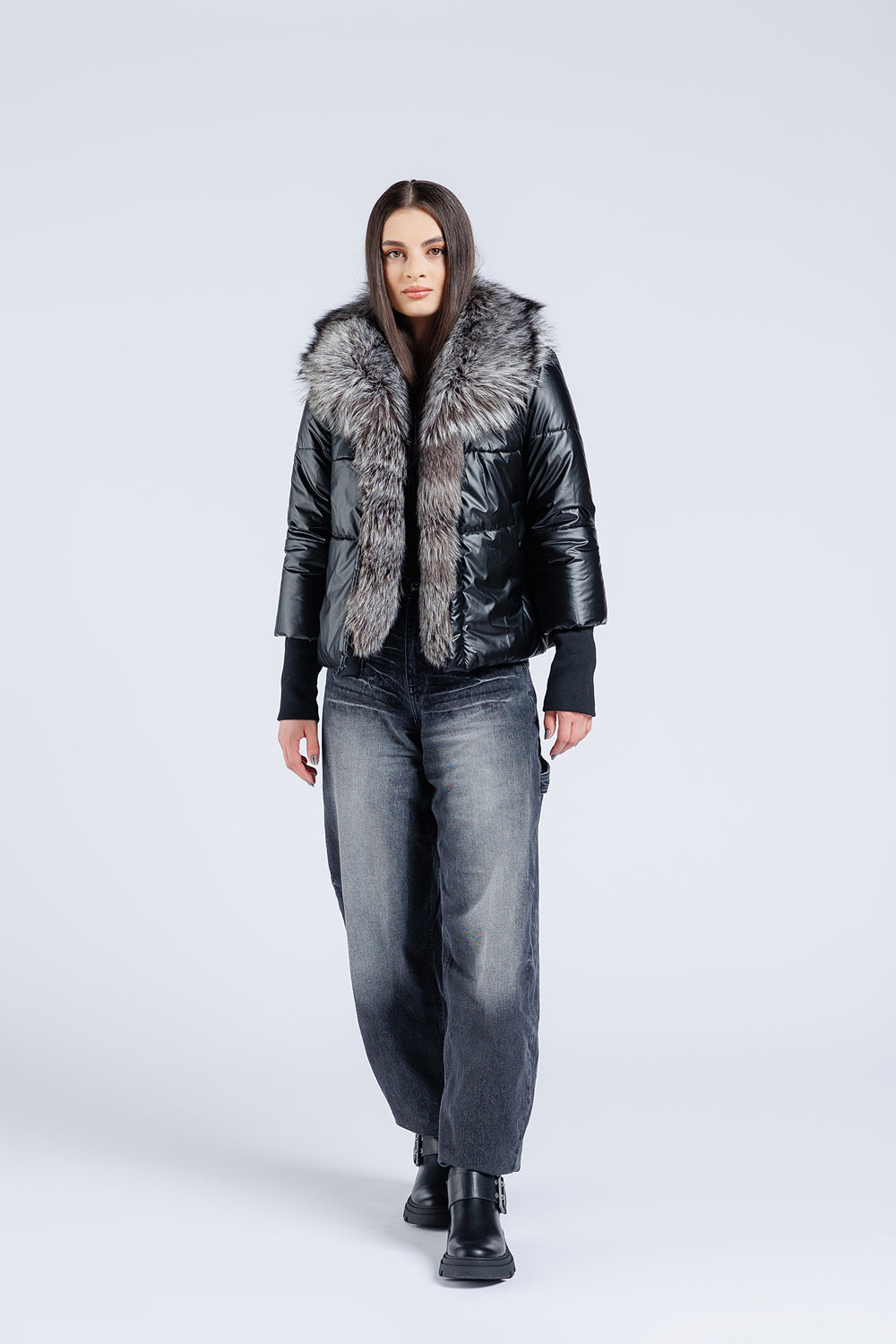 Women's Jacket with Natural Fox Fur Collar, Obsidian 99