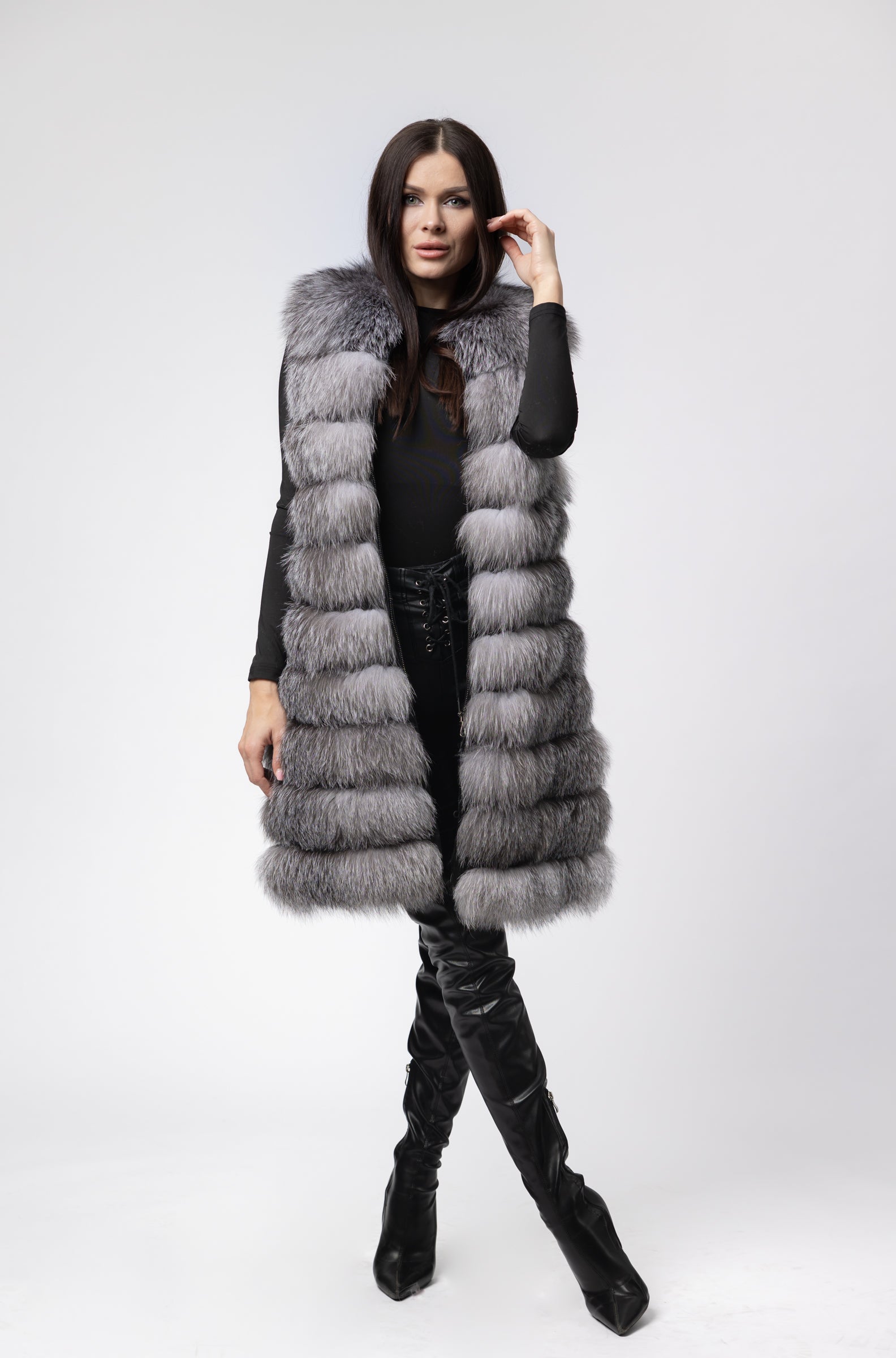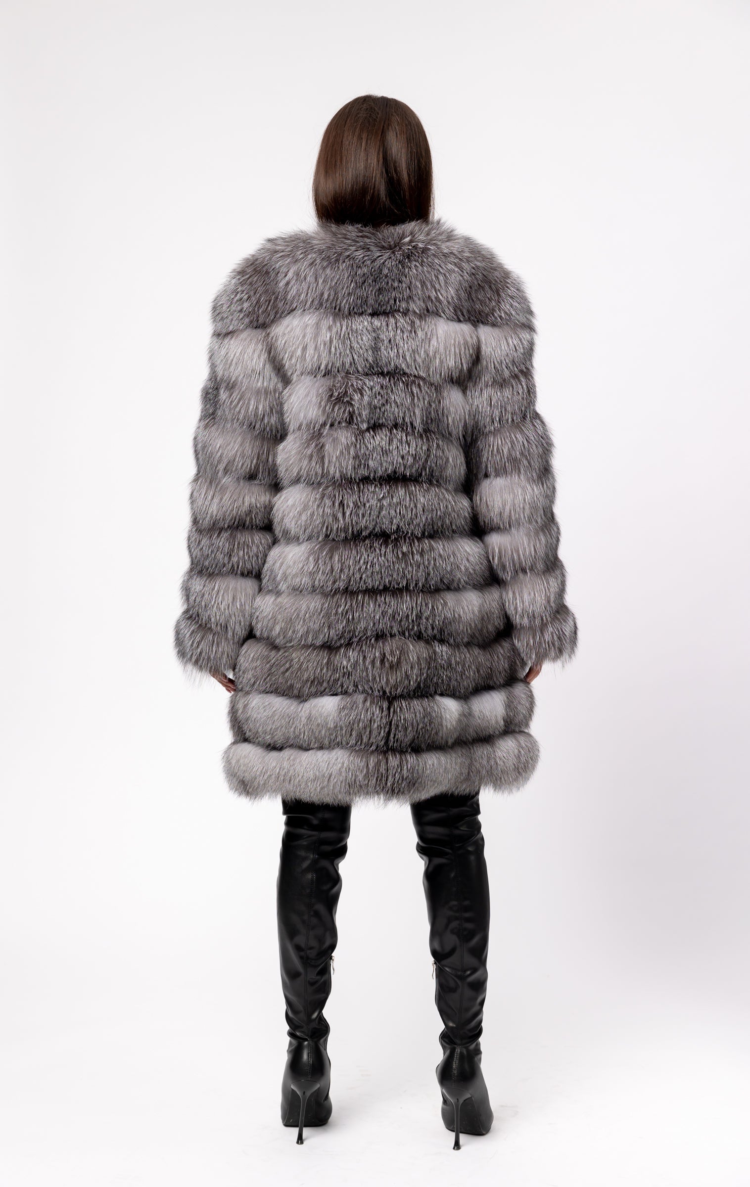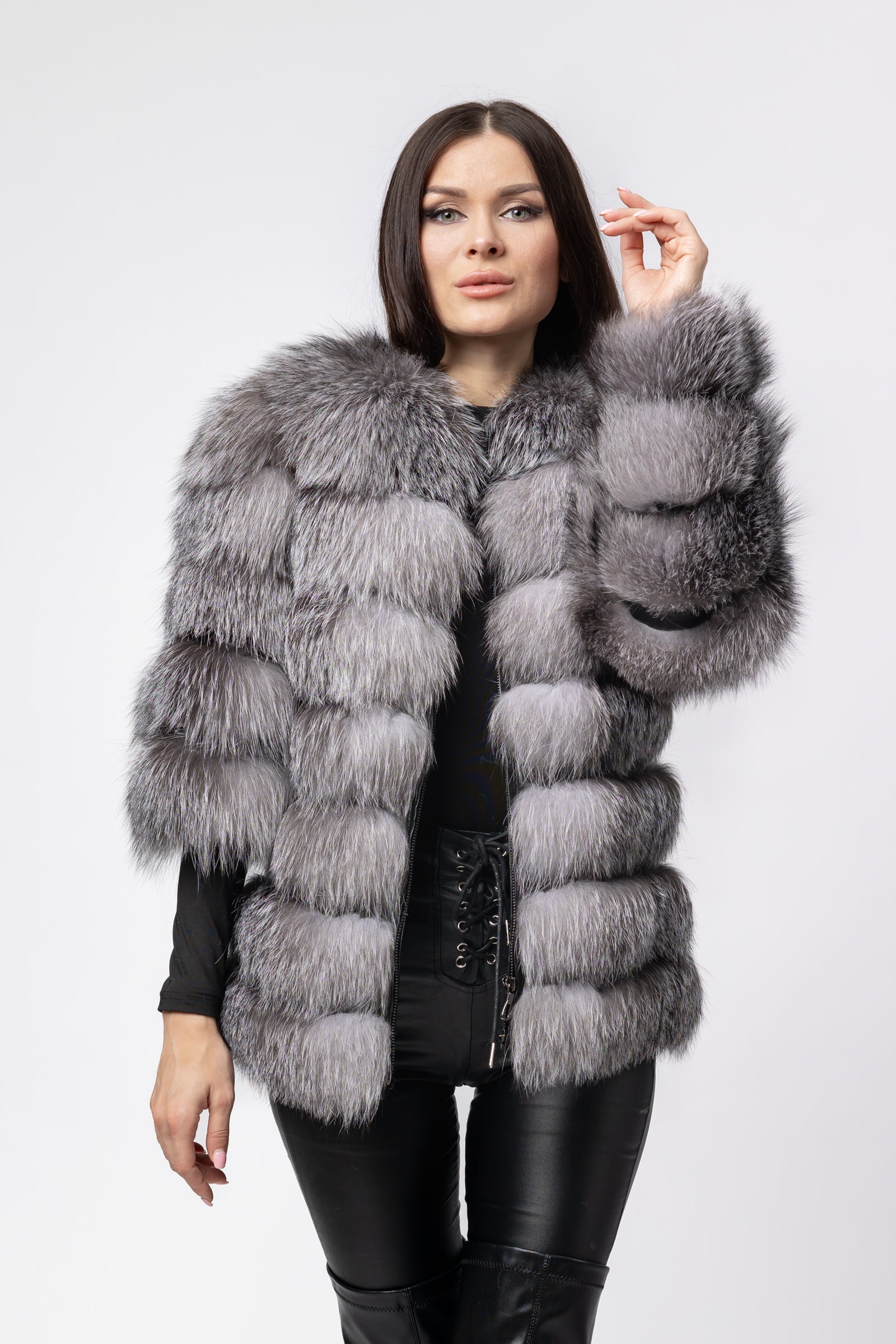 Women's Natural Fox Fur Coat, 6-in-1 Convertible, Silver Grey 257