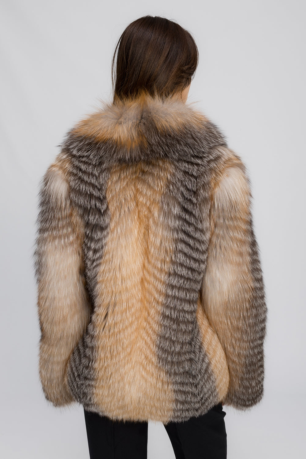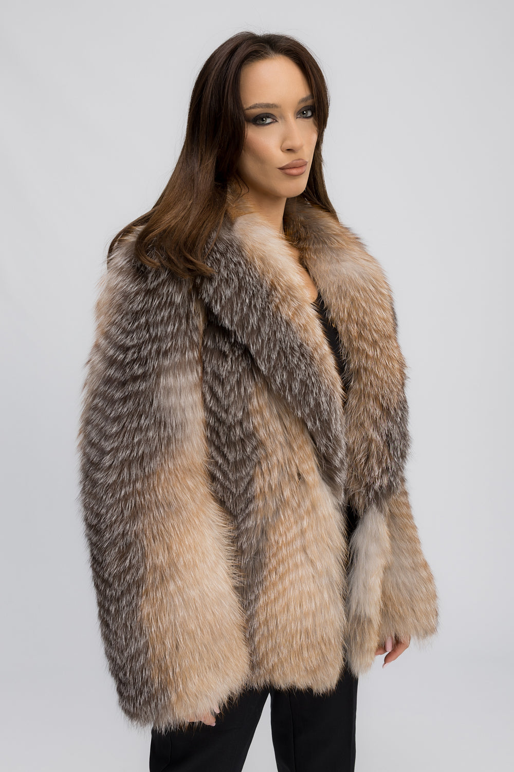 Haină din Blană Naturală de Vulpe, cu Guler Rever, Femei, Nordic Amber 465