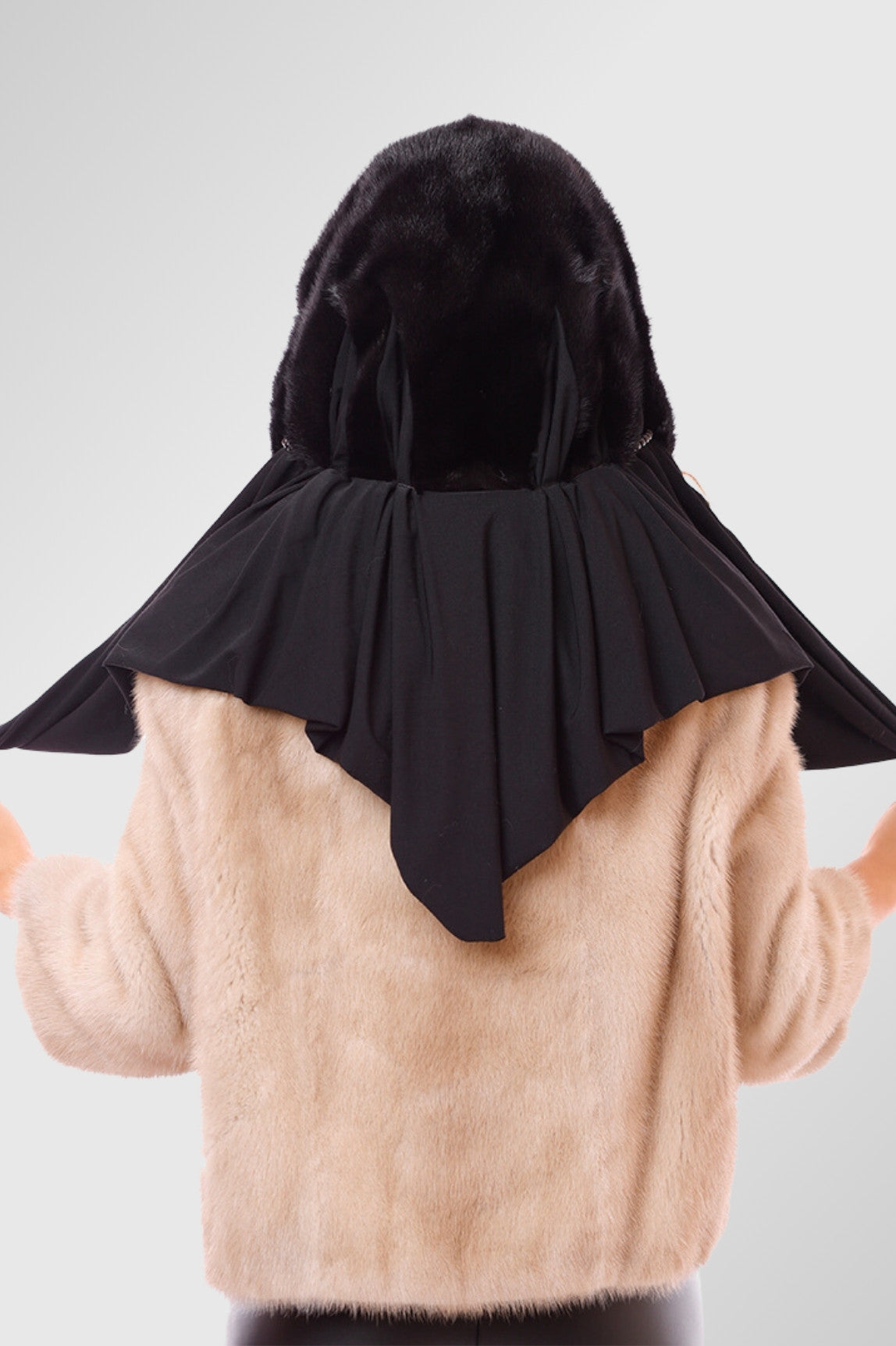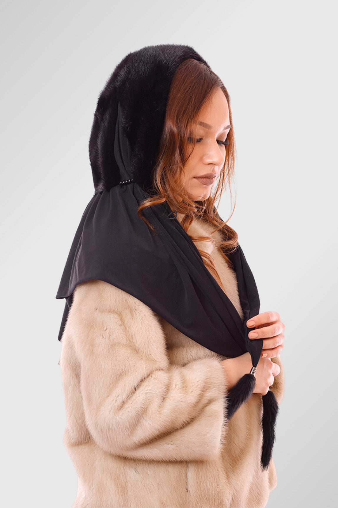 Eșarfă din Blană Naturală de Vizon și Material Textil Elastic, Femei, Obsidian 3