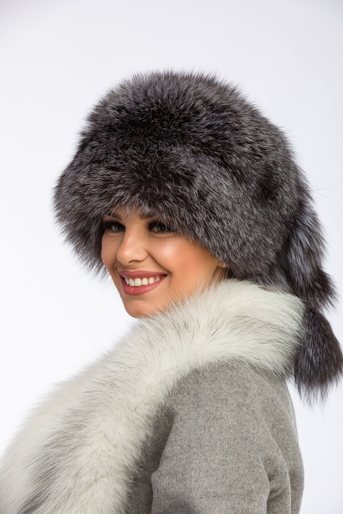 Căciulă din Blană Naturală de Vulpe Argintie, Femei, Grey Frost 19
