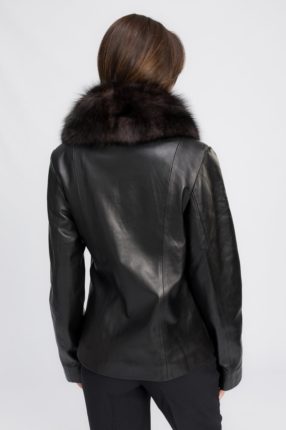 Geacă din Piele Naturală, cu Guler din Blană de Vulpe, Femei, Obsidian 442