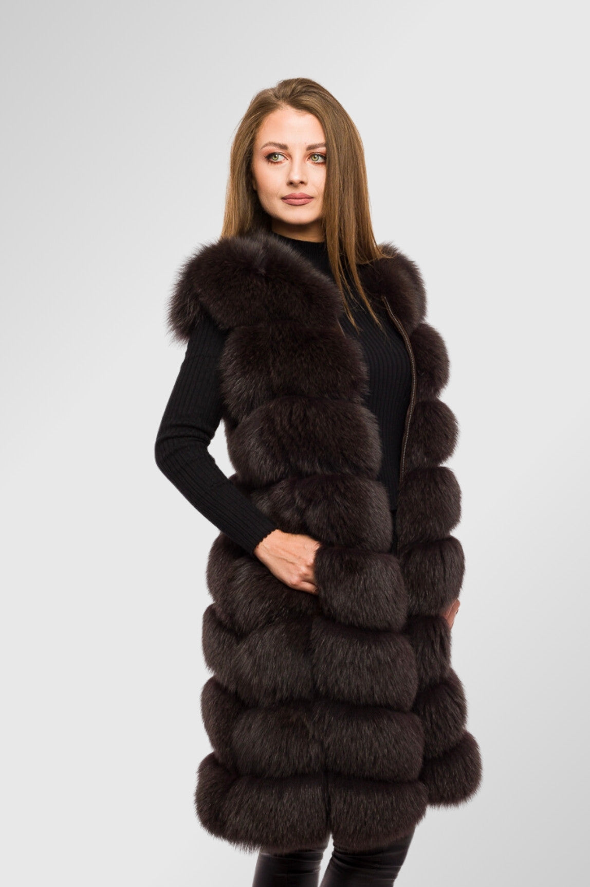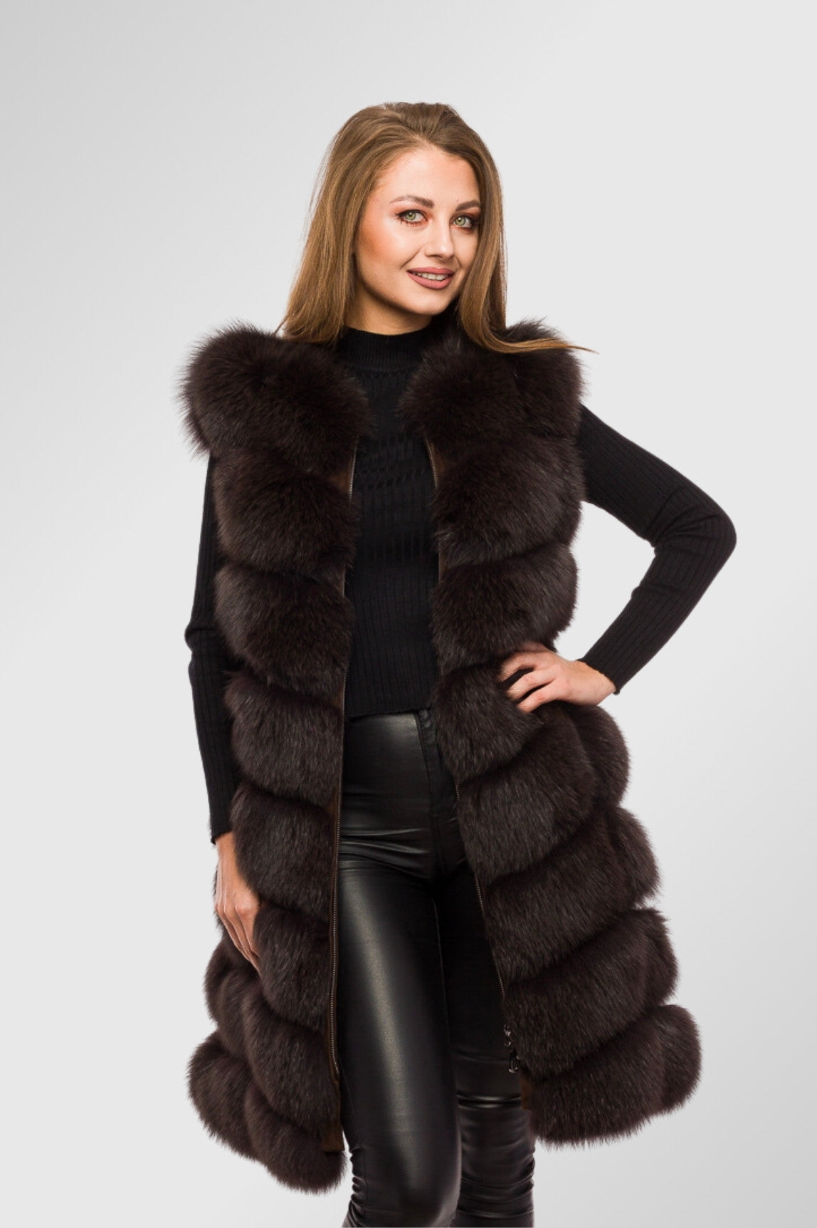 Vestă din Blană Naturală de Vulpe, Femei, Chocolate 322