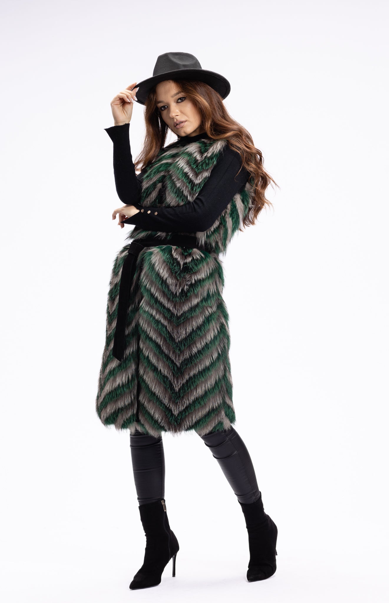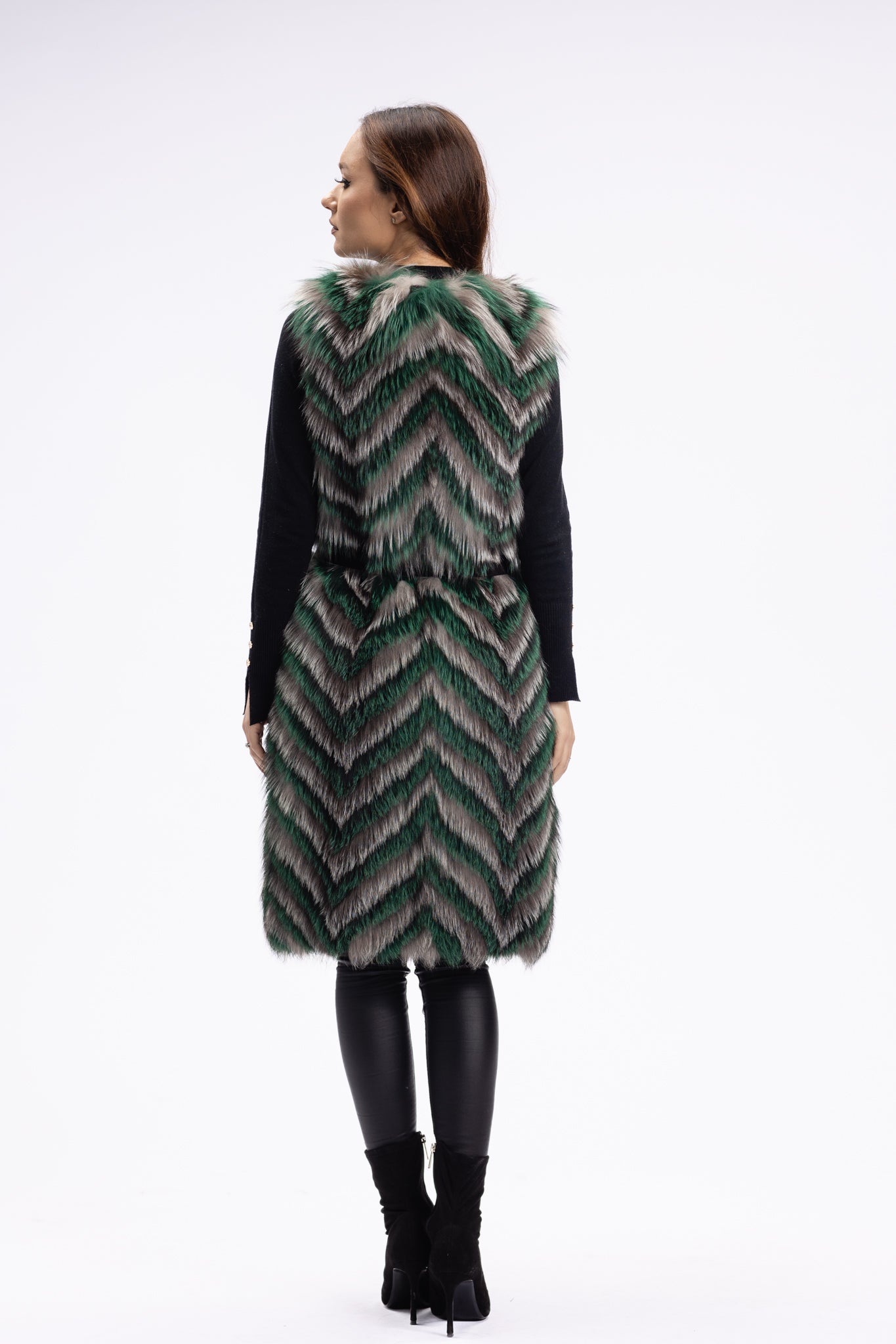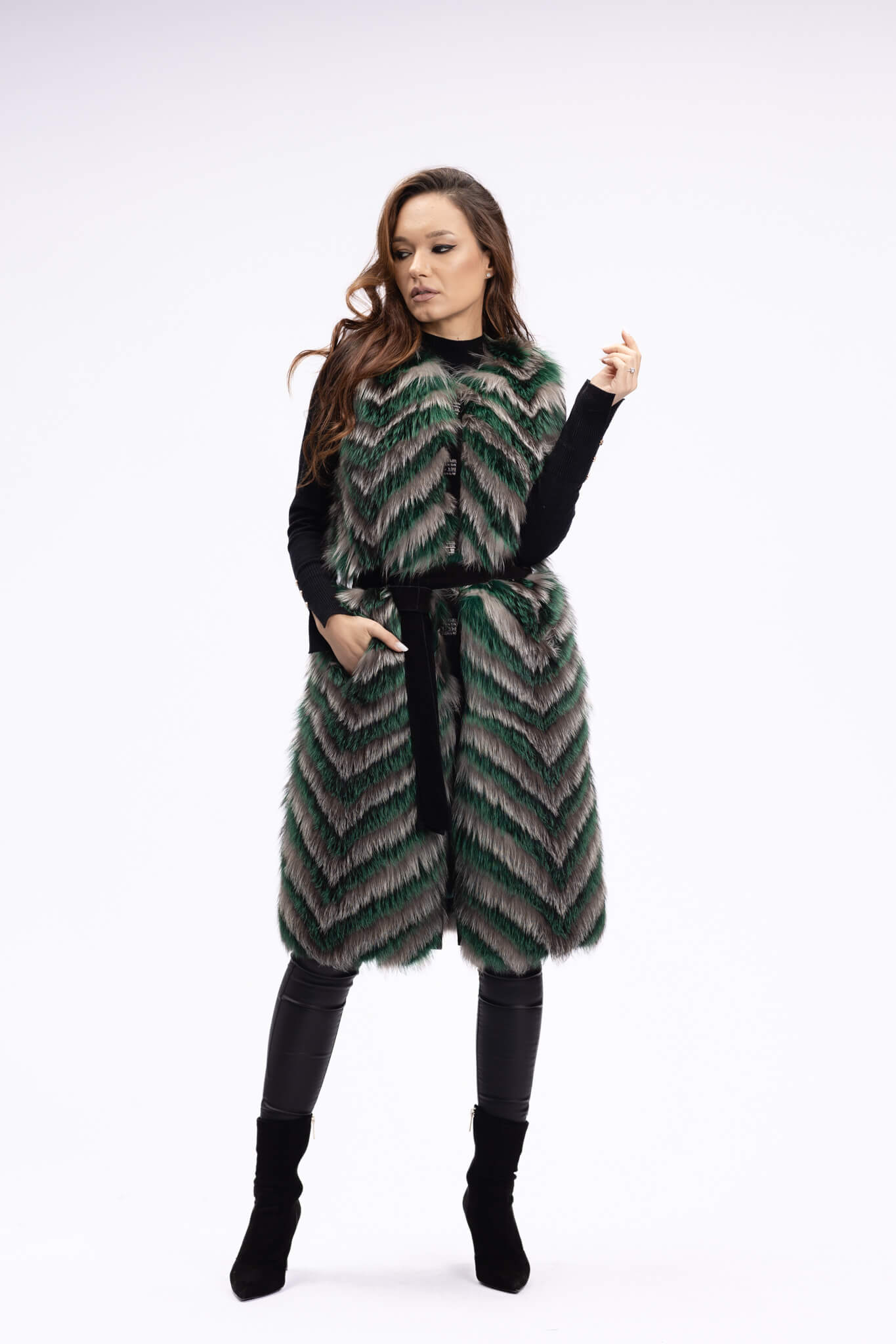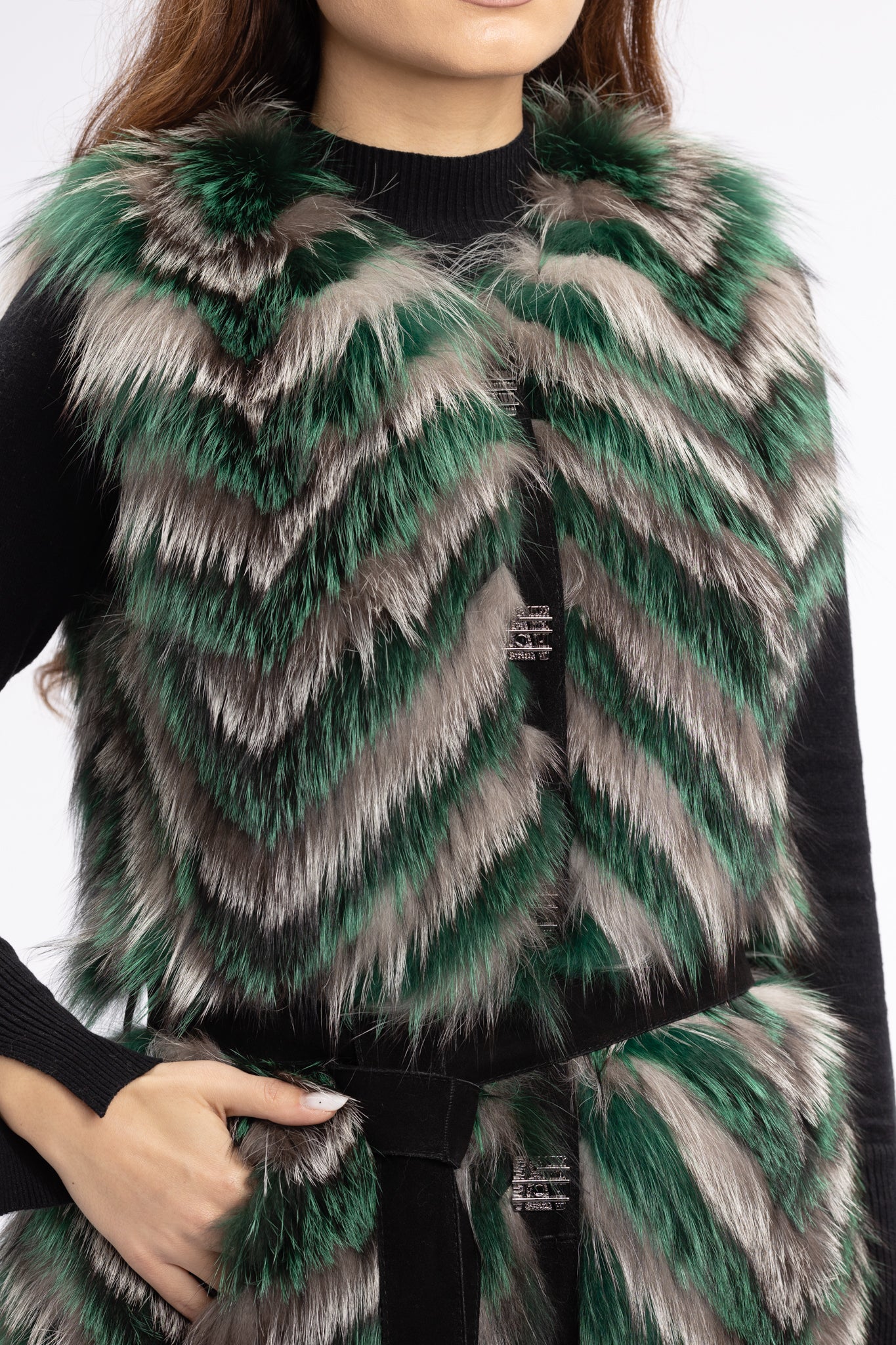 Vestă din Blană Naturală de Vulpe, Femei, Emerald și Silver Grey 323